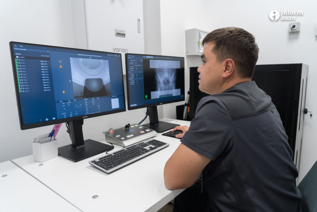 «До, во время и после лечения мы можем под проходящий радиационный луч адаптировать те органы и ткани, которые попадают в зону облучения, то есть уменьшать их и сдвигать. Это всё в процессе облучения. Это нам позволяет выполнять основной принцип лучевой терапии: максимальная доза на опухоль, минимальная доза на окружающие здоровые ткани. За счёт этого значительно уменьшается количество лучевых реакций и повреждений. Многие больные, получив лечение на этом аппарате, не нуждаются в длительном реабилитационном периоде», – рассказал руководитель центра радиационной онкологии АО «КазНИИОР» Виктор Ким.