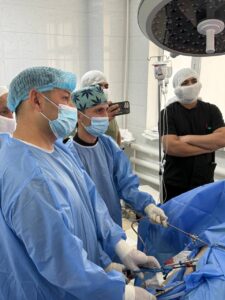 Руководитель Центра онкогинекологии, профессор Ерлан Кукубасов, провёл несколько лапароскопических радикальных гистерэктомий, представив современные подходы к органосохраняющему и высокотехнологичному лечению злокачественных опухолей женской репродуктивной системы.